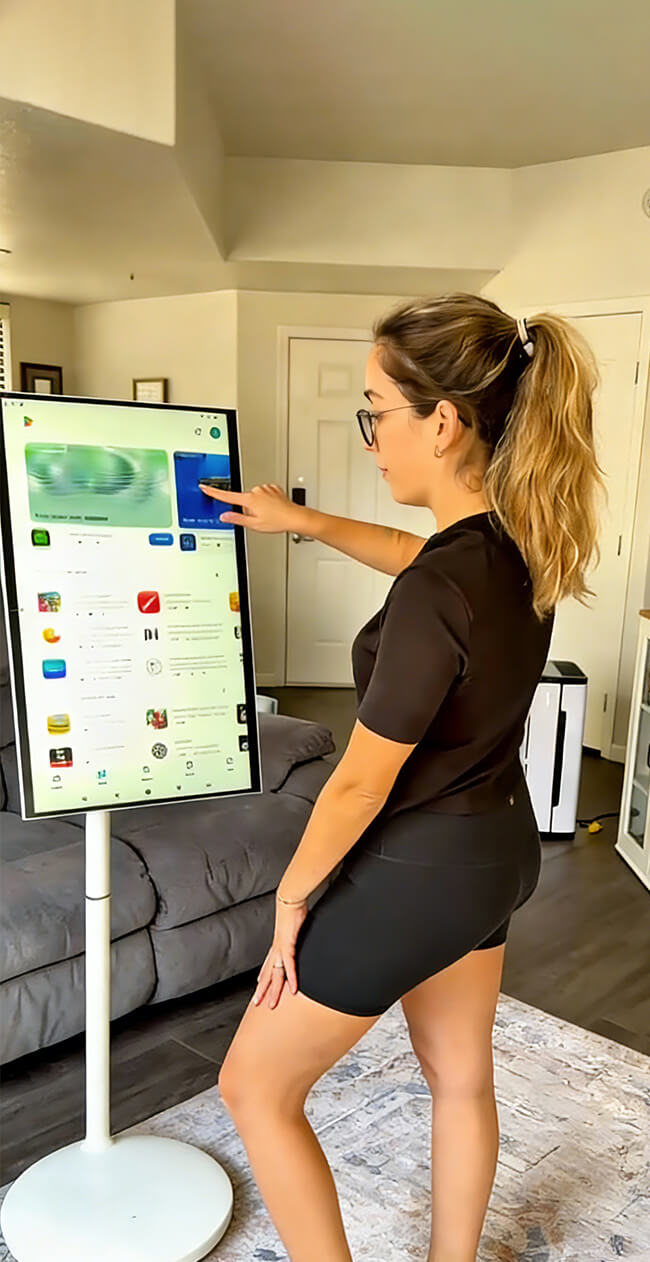 - ✅ Tilt, swivel, rotate, and adjust height to match any viewing position. ✅ Android 14 touchscreen with 8GB RAM and 128GB storage for smooth use.